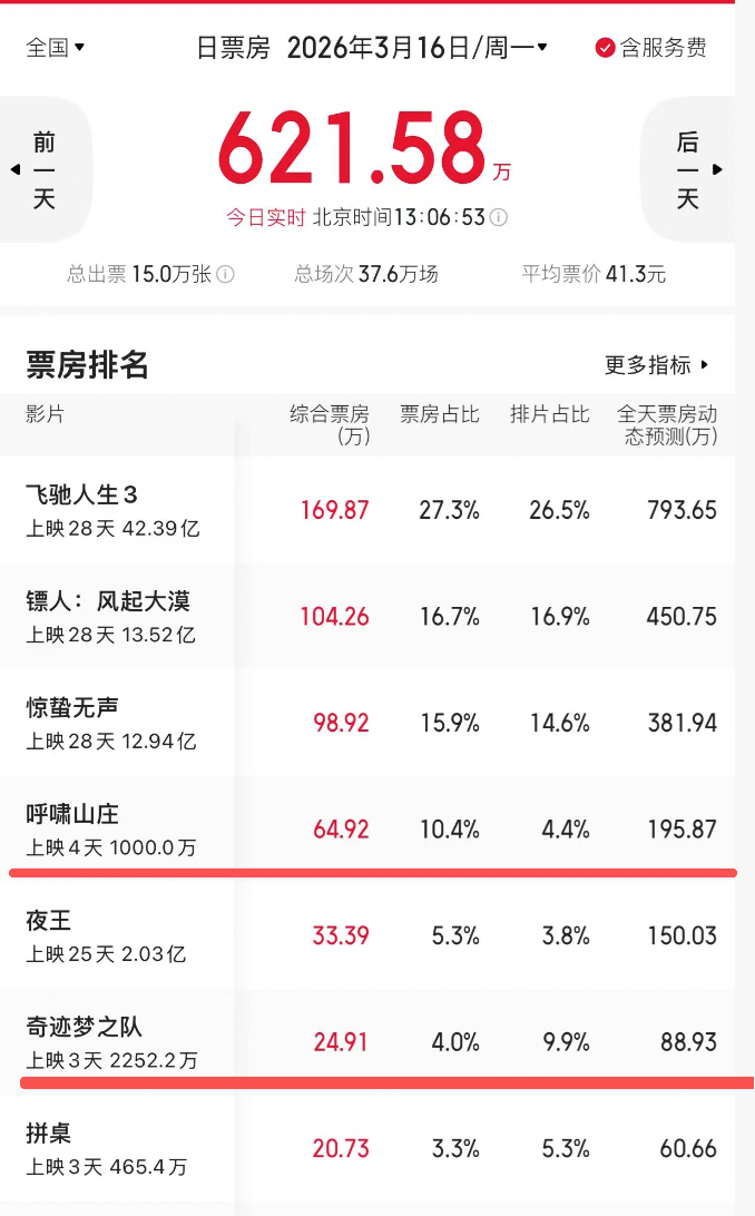 总体而言,张艺谋的《惊蛰无声》算是很落后了,本来希望它能够守住亚军的位置,但现在看来,它连续20多天都被《镖人》压制得死死的,完全没有还手之力。