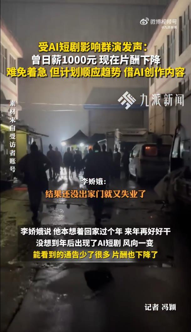在短剧行业才摸爬滚打几个月的李娇娥,向记者讲述了自己的经历。他从长剧特约转战短剧,凭借努力和运气渐渐有了些知名度,年前行情好的时候,日薪能稳在千元,角色也有的挑。本想年后大干一场,没想到风向突变。AI短剧的兴起,让能看到的通告锐减,片酬也随之下跌。“年前一个月能接十来部,现在我一部戏都没接,”李娇娥说。期间他曾收到过一个片约,但日薪报价已降至600元,加上高昂的机票成本,最终只能放弃。
