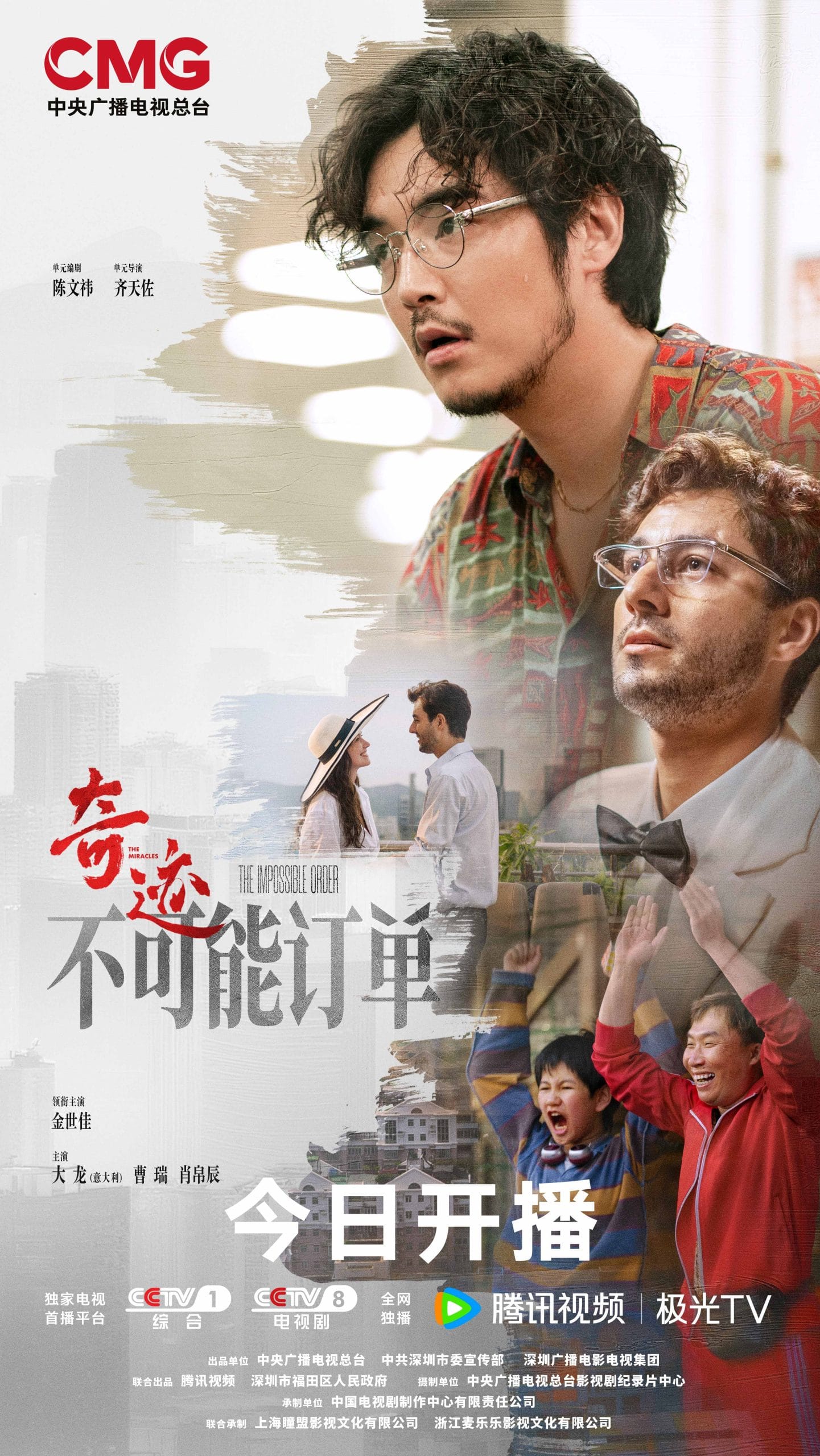 中央广播电视总台首部原创精品短剧集《奇迹》今日登陆CCTV-1晚八点黄金档首播,并将于2026年1月12日登陆CCTV-8晚七点黄金档播出,腾讯视频全网独播。该剧由中央广播电视总台、中共深圳市委宣传部、深圳广播电影电视集团出品,深圳市腾讯计算机系统有限公司、深圳市福田区人民政府联合出品,中央广播电视总台影视剧纪录片中心摄制,中国电视剧制作中心有限责任公司承制,上海瞳盟影视文化有限公司、浙江麦乐乐影视文化有限公司联合承制,集结总导演沈严、文学总监梁振华、剪辑总监周新霞等金牌幕后,更有演员胡歌、宋佳、雷佳音、闫妮、白宇、陈晓、张颂文、童瑶、王安宇、于适等主创惊喜加盟。