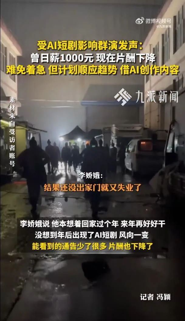 2026年,当AI短剧以爆款之姿横扫屏幕时,行业内部的震荡远比观众看到的更剧烈。据3月20日报道,近日,短剧演员李娇娥的一篇自述,将这股技术浪潮下的冰冷现实推到了公众面前:他的日薪,已从年前的1000元,直降到了600块。