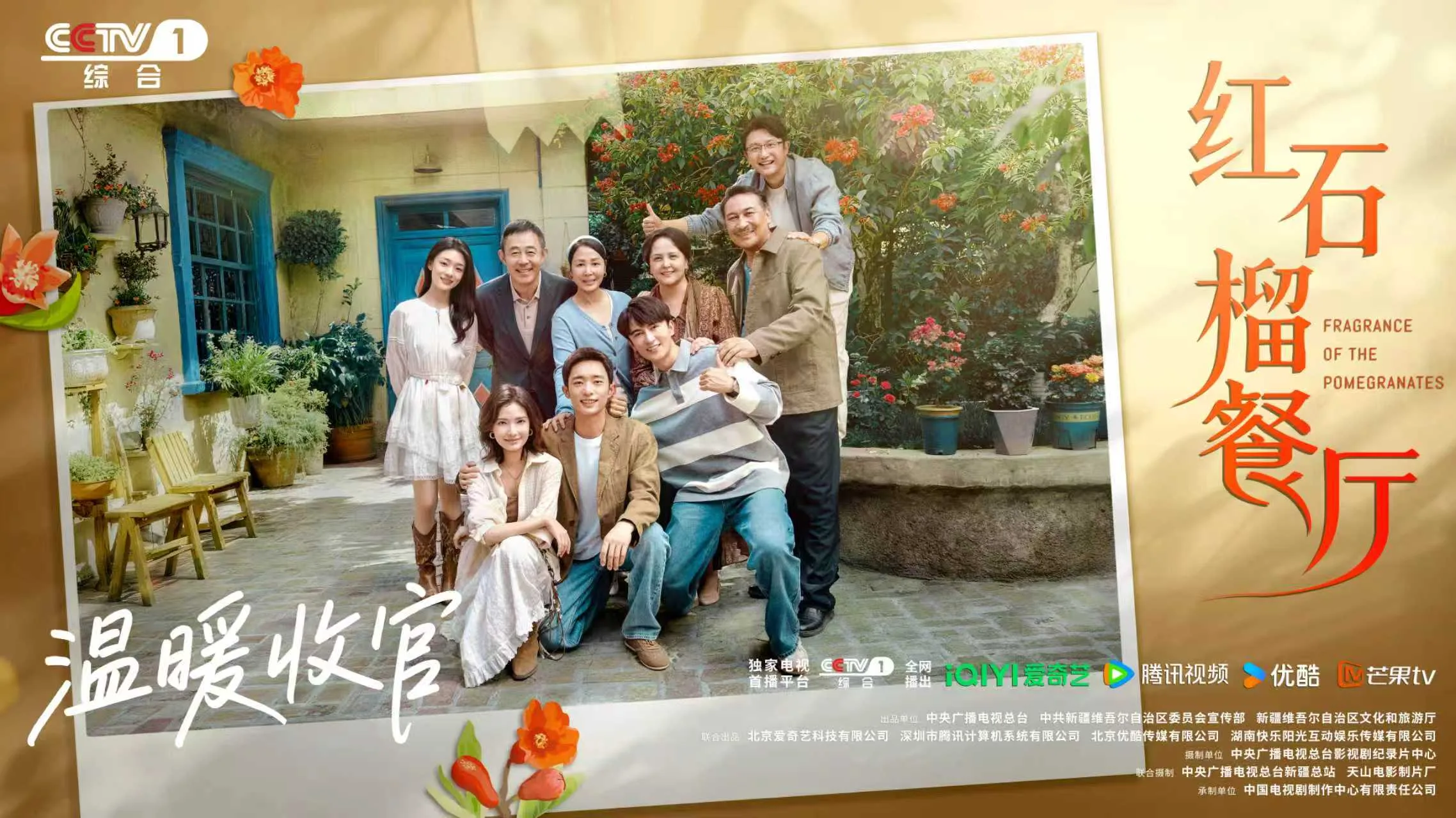今日,由中央广播电视总台、中共新疆维吾尔自治区委员会宣传部,新疆维吾尔自治区文化和旅游厅共同出品,北京爱奇艺科技有限公司、深圳市腾讯计算机系统有限公司、北京优酷传媒有限公司、湖南快乐阳光互动娱乐传媒有限公司联合出品,中央广播电视总台影视剧纪录片中心摄制,中央广播电视总台新疆总站、天山电影制片厂联合摄制,中国电视剧制作中心有限责任公司承制,白宇帆、加奈那领衔主演,涂松岩、刘芮麟、王和特别主演,高至霆特邀主演,孔都孜·塔西、阿丽玛、熊睿玲、阿不都克力木·阿不力孜、米热、江依昊、卡迪林娜主演,丁勇岱、林永健、侯勇、郝平、李健、张晞临、钱波、尚大庆友情出演的首部新疆都市情感剧《红石榴餐厅》迎来大结局。故事用生活化的叙事方式,让观众看到了当代新疆都市的鲜活图景,读懂了当代青年的奋斗初心,感受到了这片土地的温暖与力量。